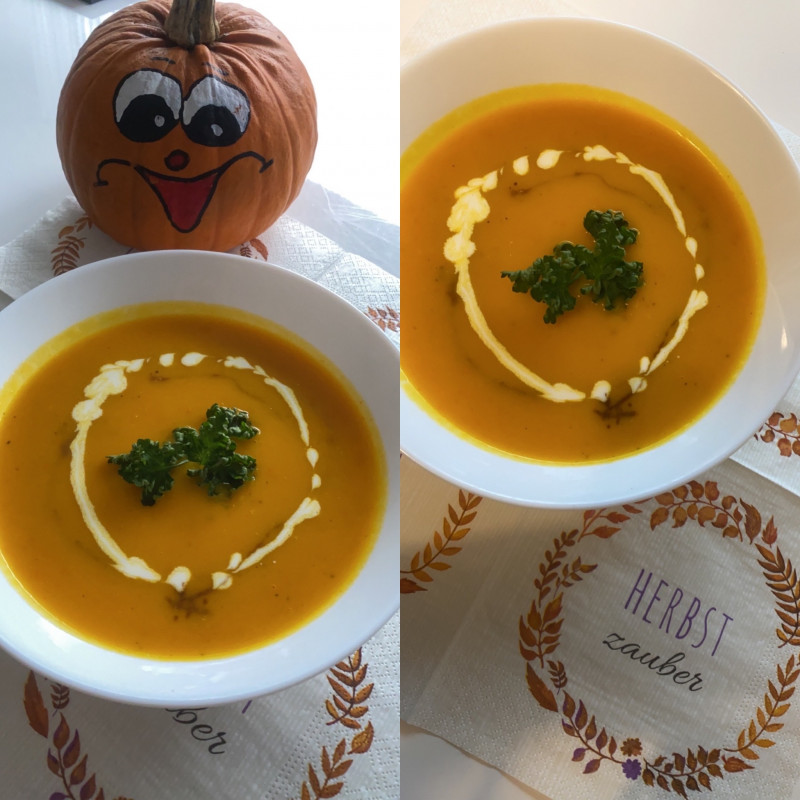 Wenn die Blätter wieder bunter werden und die Tage grauer und kürzer, dann ist es so weit und die Suppenzeit beginnt.Traditionell eröffneten wir zu Beginn des goldenen Oktobers die Suppenzeit mit einer selbst gekochten cremigen Kürbissuppe. Die Bewohner tauschten untereinander angeregt verschiedene Kürbisrezepte aus und entschieden sich dann für eines mit viel Sahne. Alle hatten bei der Zubereitung fleißig mitgeholfen und viel Spaß zusammen gehabt. Dabei wurden bekannte alte Lieder gesungen.Gemeinsam wurde dann zum Mittagessen die Suppe mit viel Genuss von den Bewohnern verspeist.
